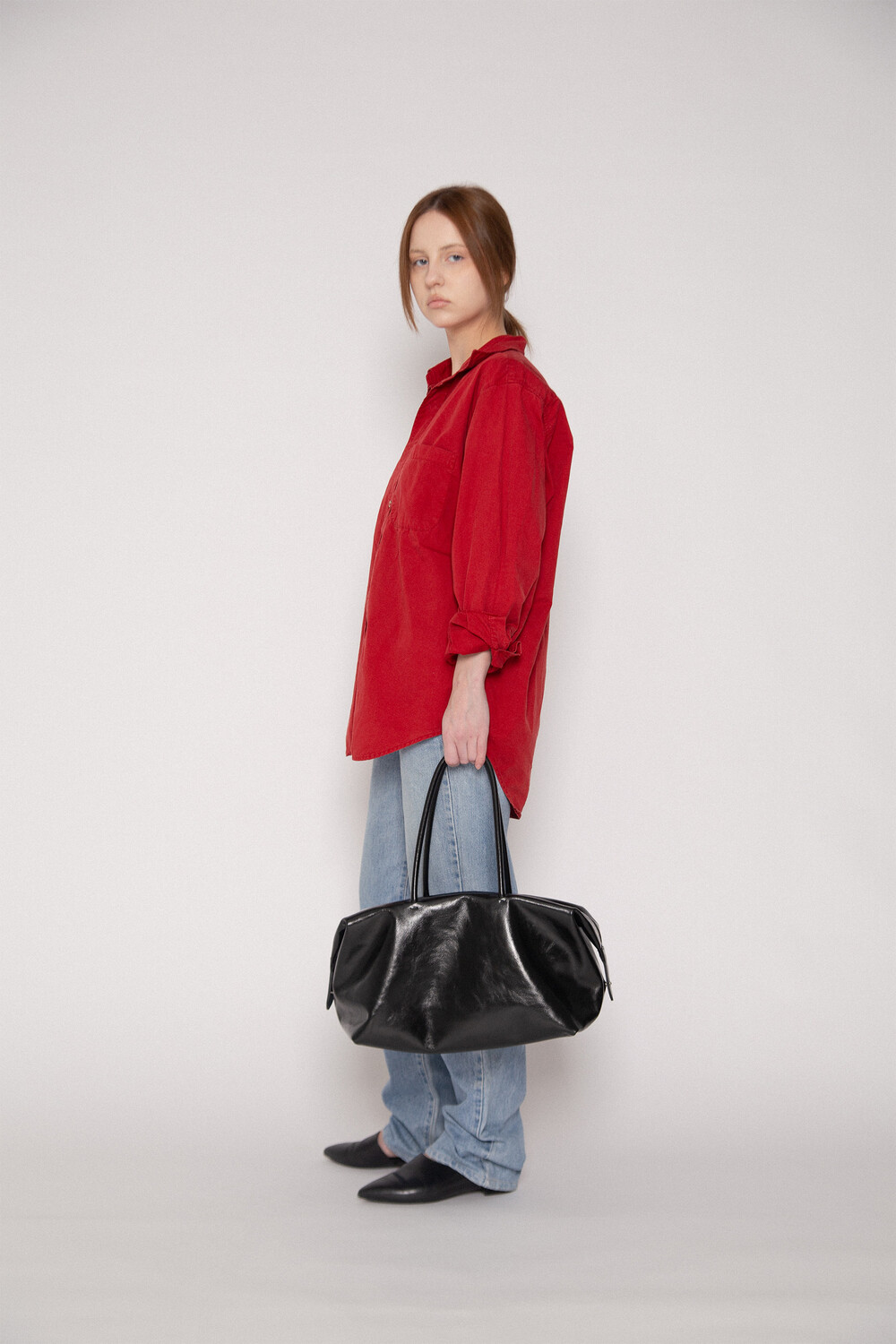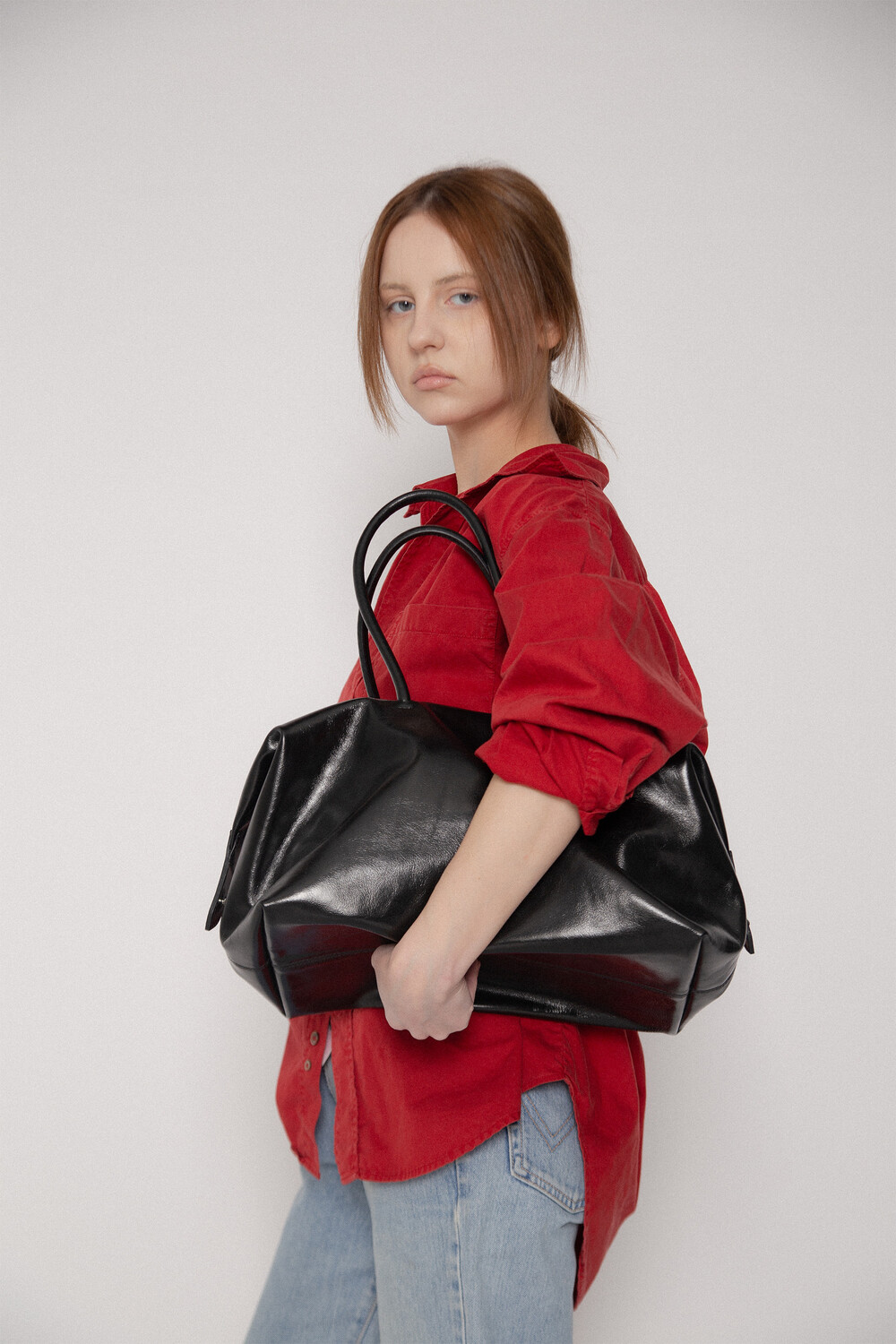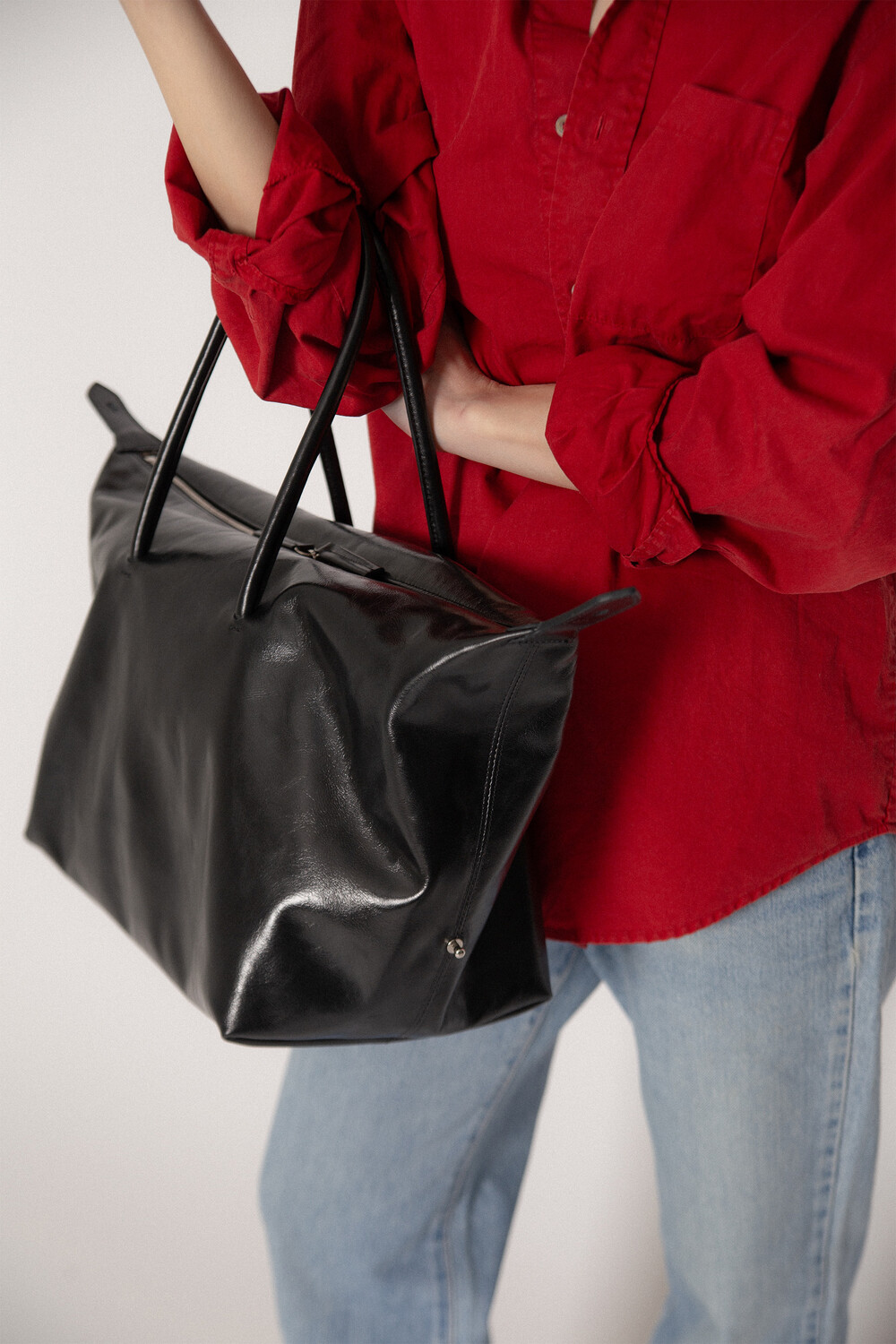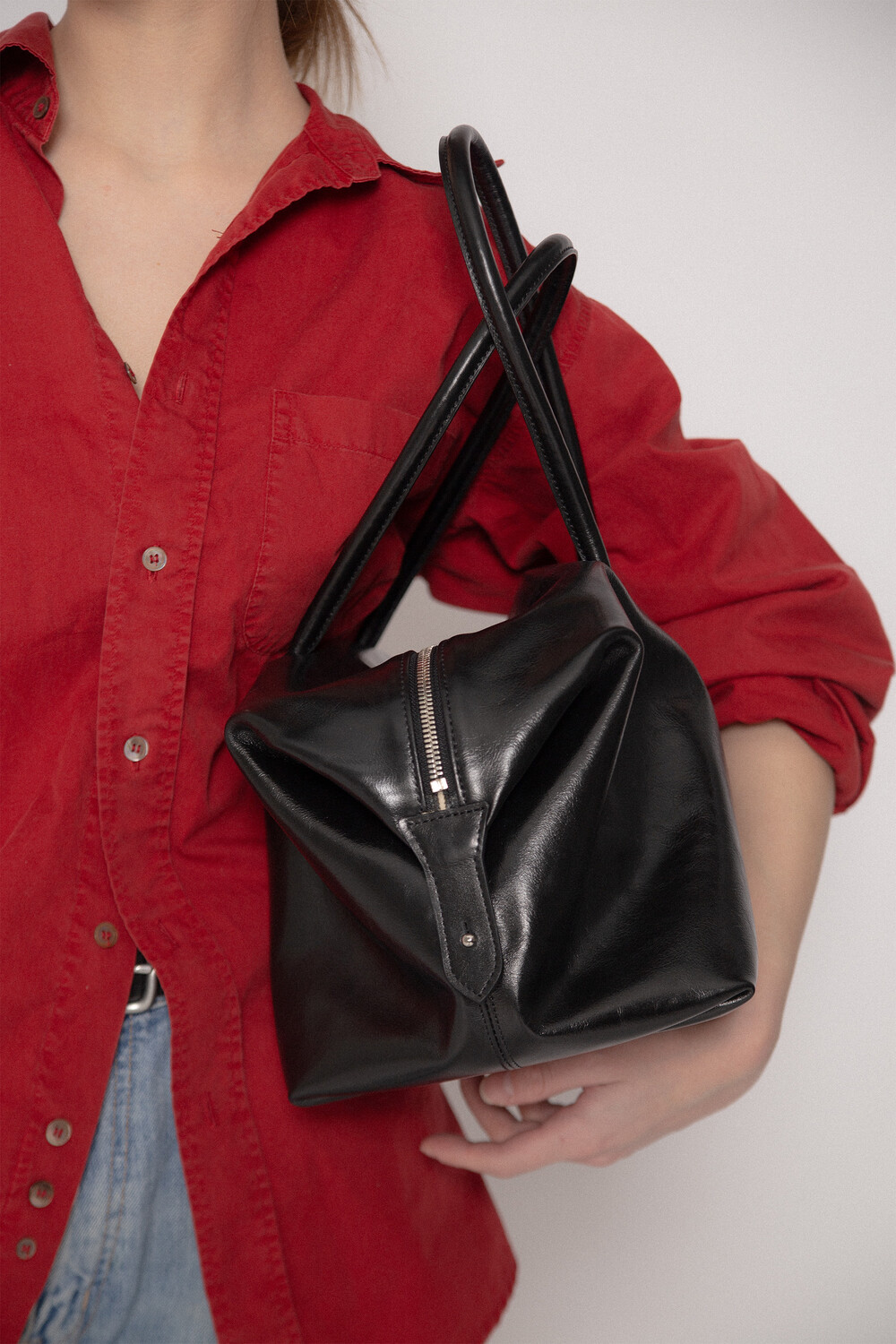 Folded Boston Bag은 사이드 폴딩 구조로 완성된 보스턴 백입니다. 장식을 최소화하고 접히는 구조 자체가 가방의 실루엣을 만들도록 설계했습니다. 양옆의 폴딩 디테일은 자연스러운 볼륨을 만들면서 구조를 안정적으로 유지합니다. 스톤 텍스처가 은은하게 드러나는 소가죽을 사용해 빛에 따라 조용한 광택이 나타납니다. 사이드를 접으면 밀도 있는 폴디드 실루엣으로, 펼치면 클래식한 보스턴 형태로 사용할 수 있는 투웨이 구조입니다. 스타일과 수납에 따라 자연스럽게 형태를 조절할 수 있습니다. Regular와 Large 두 가지 사이즈로 출시됩니다.
