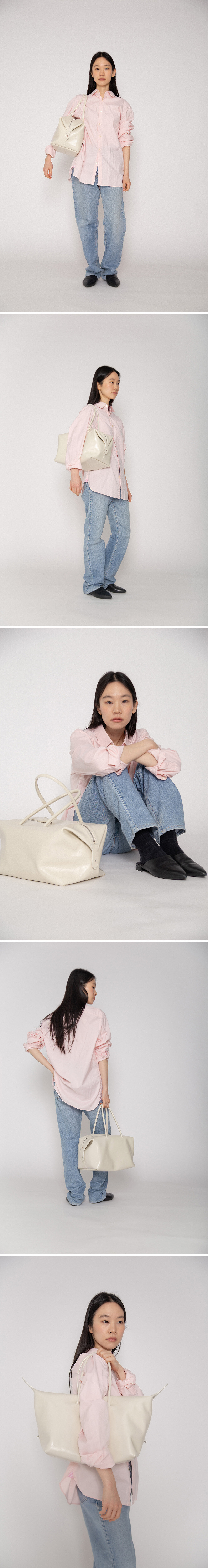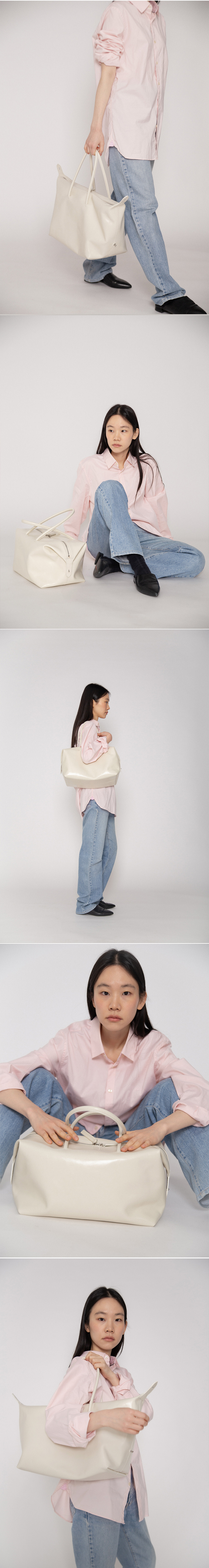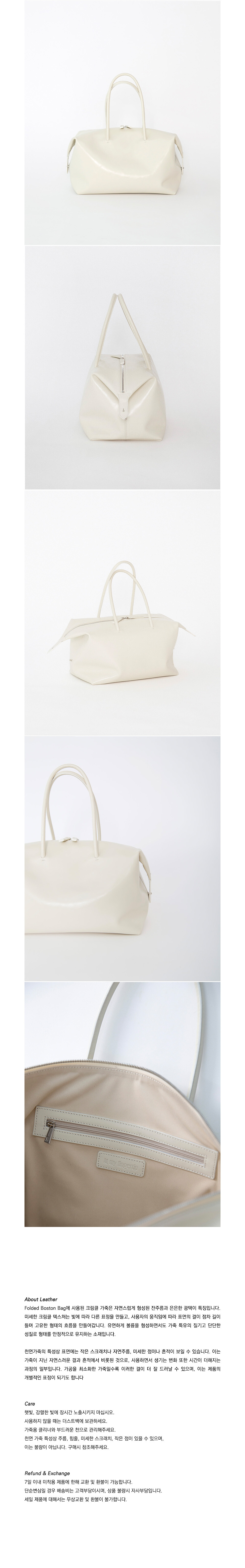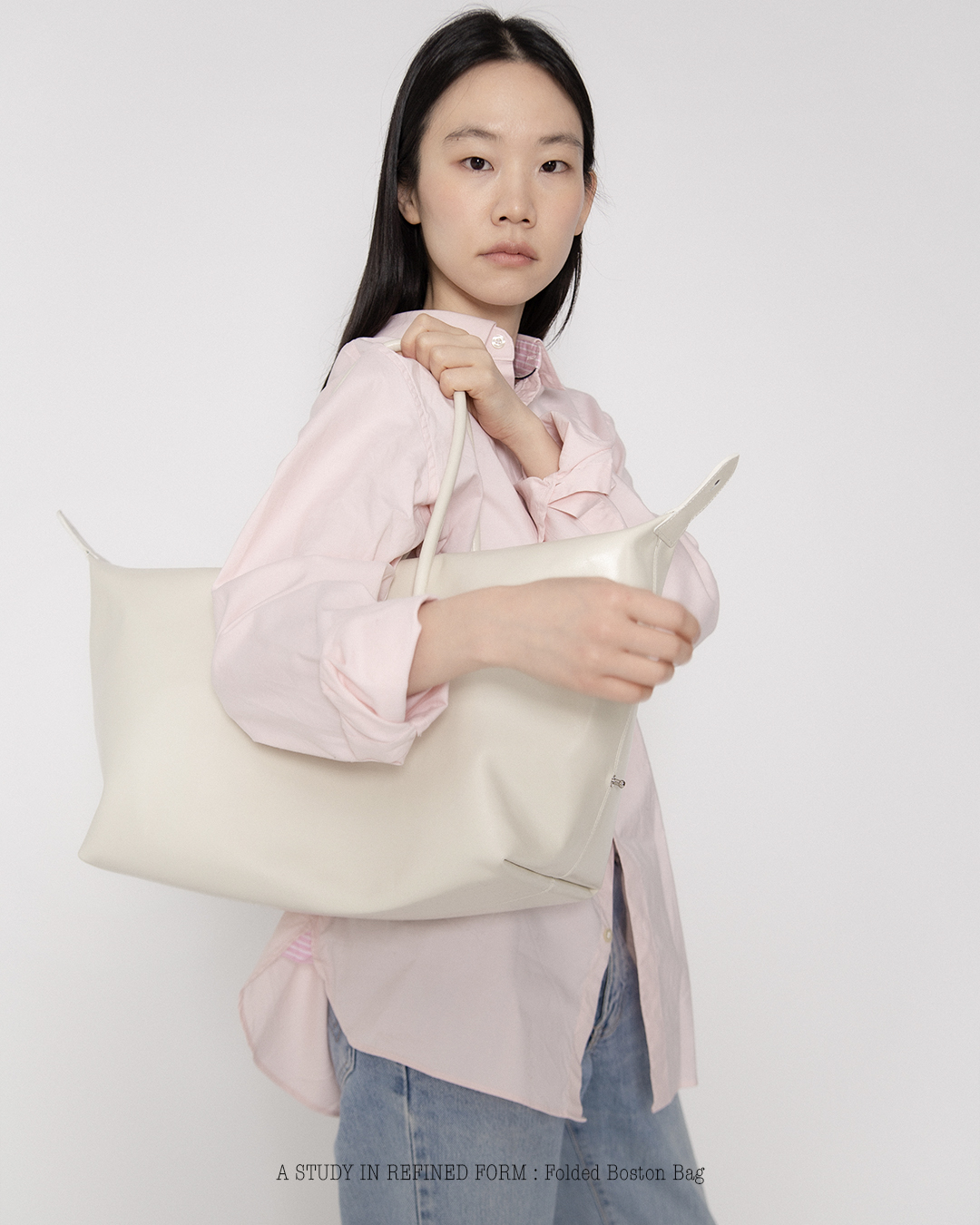Folded Boston Bag은 사이드 폴딩 구조로 완성된 보스턴 백입니다. 장식을 최소화하고 접히는 구조 자체가 가방의 실루엣을 만들도록 설계했습니다. 양옆의 폴딩 디테일은 자연스러운 볼륨을 만들면서 구조를 안정적으로 유지합니다. 스톤 텍스처가 은은하게 드러나는 소가죽을 사용해 빛에 따라 조용한 광택이 나타납니다. 사이드를 접으면 밀도 있는 폴디드 실루엣으로, 펼치면 클래식한 보스턴 형태로 사용할 수 있는 투웨이 구조입니다. 스타일과 수납에 따라 자연스럽게 형태를 조절할 수 있습니다. Regular와 Large 두 가지 사이즈로 출시됩니다.