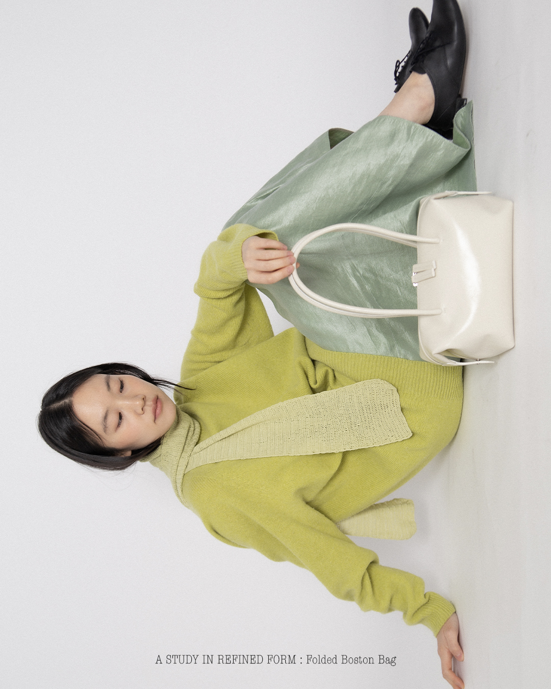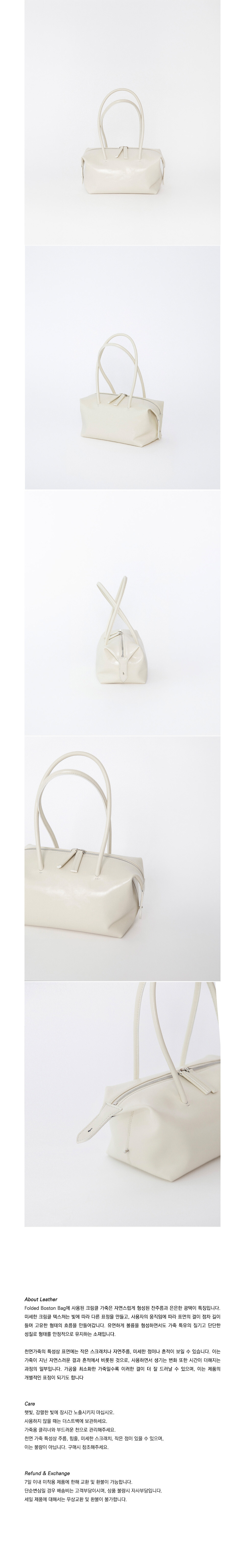 Folded Boston Bag은 사이드 폴딩 구조로 완성된 보스턴 백입니다. 장식을 최소화하고 접히는 구조 자체가 가방의 실루엣을 만들도록 설계했습니다. 양옆의 폴딩 디테일은 자연스러운 볼륨을 만들면서 구조를 안정적으로 유지합니다. 스톤 텍스처가 은은하게 드러나는 소가죽을 사용해 빛에 따라 조용한 광택이 나타납니다. 사이드를 접으면 밀도 있는 폴디드 실루엣으로, 펼치면 클래식한 보스턴 형태로 사용할 수 있는 투웨이 구조입니다. 스타일과 수납에 따라 자연스럽게 형태를 조절할 수 있습니다. Regular와 Large 두 가지 사이즈로 출시됩니다.