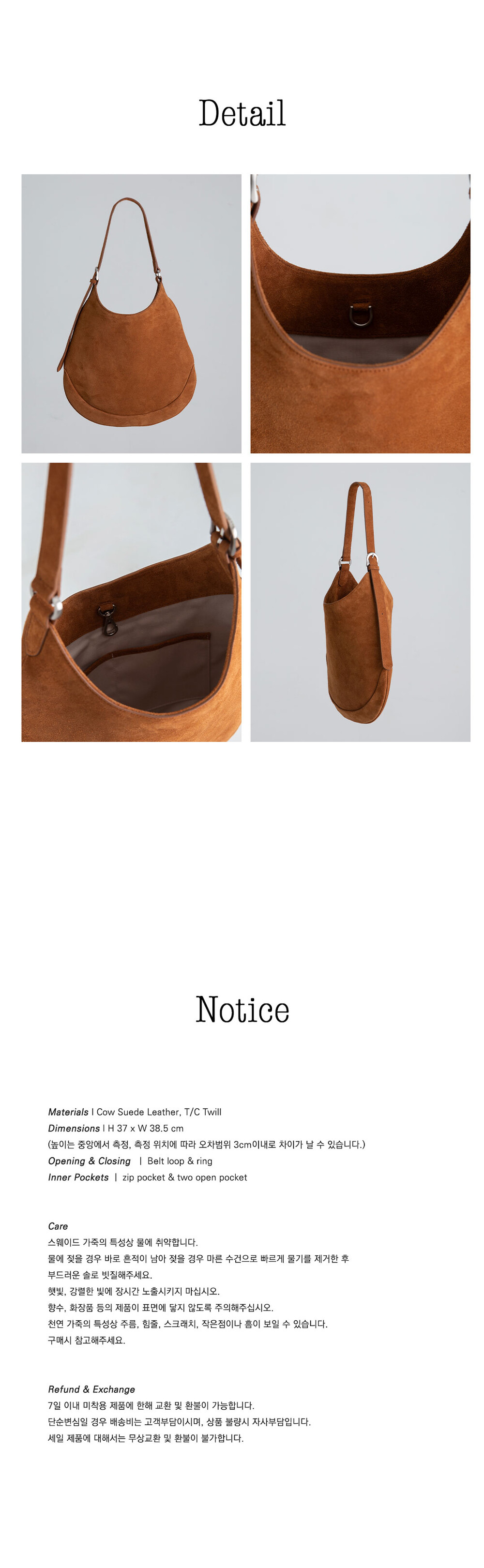 - 단순 변심의 경우 수령일로부터 7일 이내까지 교환∙반품이 가능합니다. (교환/반품비 고객님 부담)