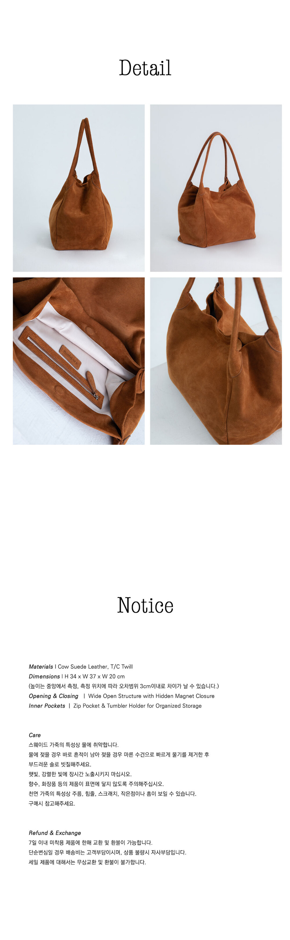 Square Large Tote & Shoulder (Suede) — Saddle Tan