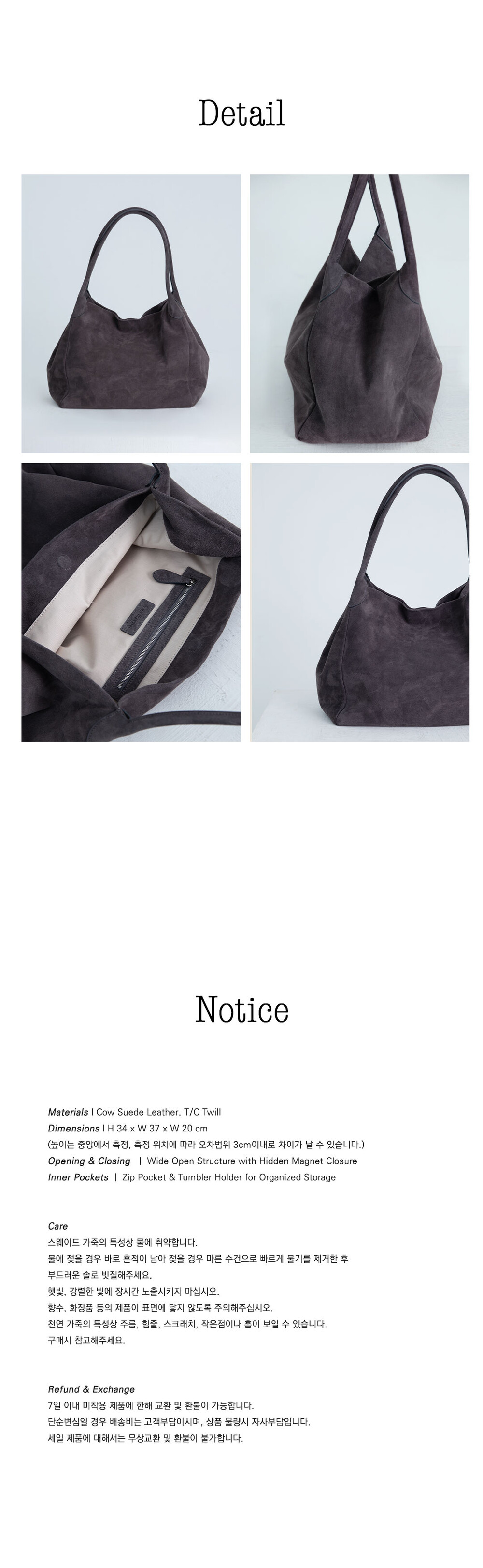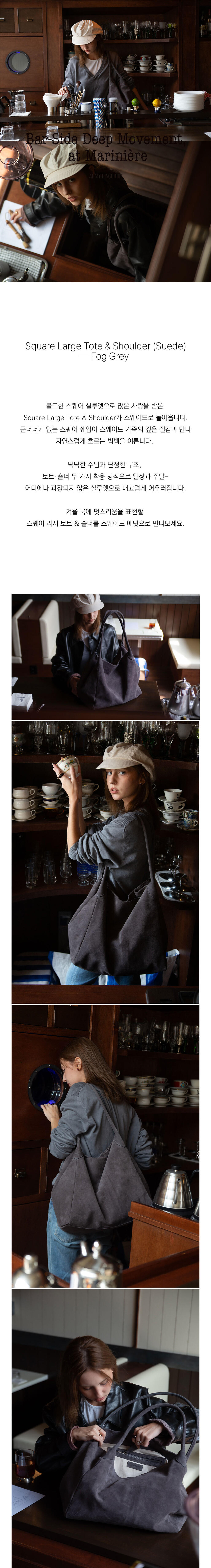 Square Large Tote & Shoulder (Suede) — Fog Grey